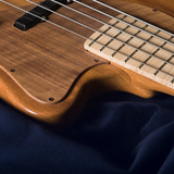 Il legno utilizzato per il corpo e il manico è Afroarmosia , un legno africano che si usa poco in liuteria ma che ho voluto sperimentare. Utilizzando un bellissimo acero marezzato per la tastiera vi assicuro che il suono è veramente ricco di armonici e con un sustine notevole |
