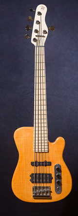 La forma di questo basso è di ispirazione Fodera ma è costruito con il manico bolt on e non necktrue come quelli che normalmente costruisce la famosa liuteria di ny; la paletta viene invece dai primi precision della Fender.